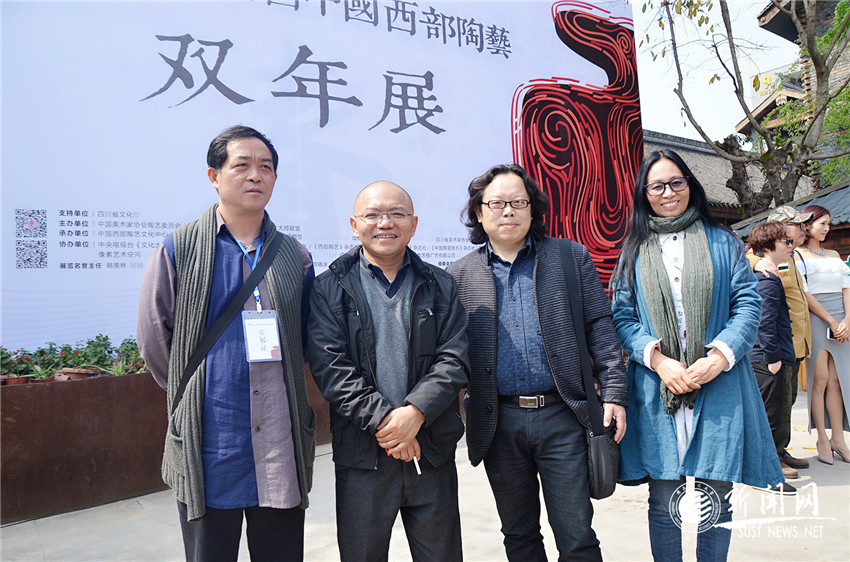 展會(huì)上,傳統(tǒng)風(fēng)格與現(xiàn)代風(fēng)格,器物造型與陶面繪事,彩繪與青花,生活陶藝、環(huán)境陶藝與觀念陶藝等,此起彼應(yīng),交織成豐富的協(xié)奏,演奏出當(dāng)代中國陶藝創(chuàng)作的壯麗樂章。四川省美術(shù)家協(xié)會(huì)秘書長(zhǎng)梁時(shí)民、中國建筑衛(wèi)生陶瓷協(xié)會(huì)駐會(huì)副會(huì)長(zhǎng)、中華陶瓷大師聯(lián)盟執(zhí)行副主席夏高生,中華陶瓷大師聯(lián)盟代執(zhí)行主席、中國工藝美術(shù)大師孟樹峰,著名古陶瓷鑒賞專家錢偉鵬,中國工藝美術(shù)學(xué)會(huì)藝術(shù)委員會(huì)秘書長(zhǎng)、中國國際手工藝文化交流促進(jìn)會(huì)副會(huì)長(zhǎng)毛增印,中國文化傳媒集團(tuán)副總經(jīng)理、藝術(shù)總監(jiān)江心先生,策展人周曉冰、學(xué)術(shù)主持吳永強(qiáng)以及眾多藝術(shù)家、學(xué)者等出席了開幕式。