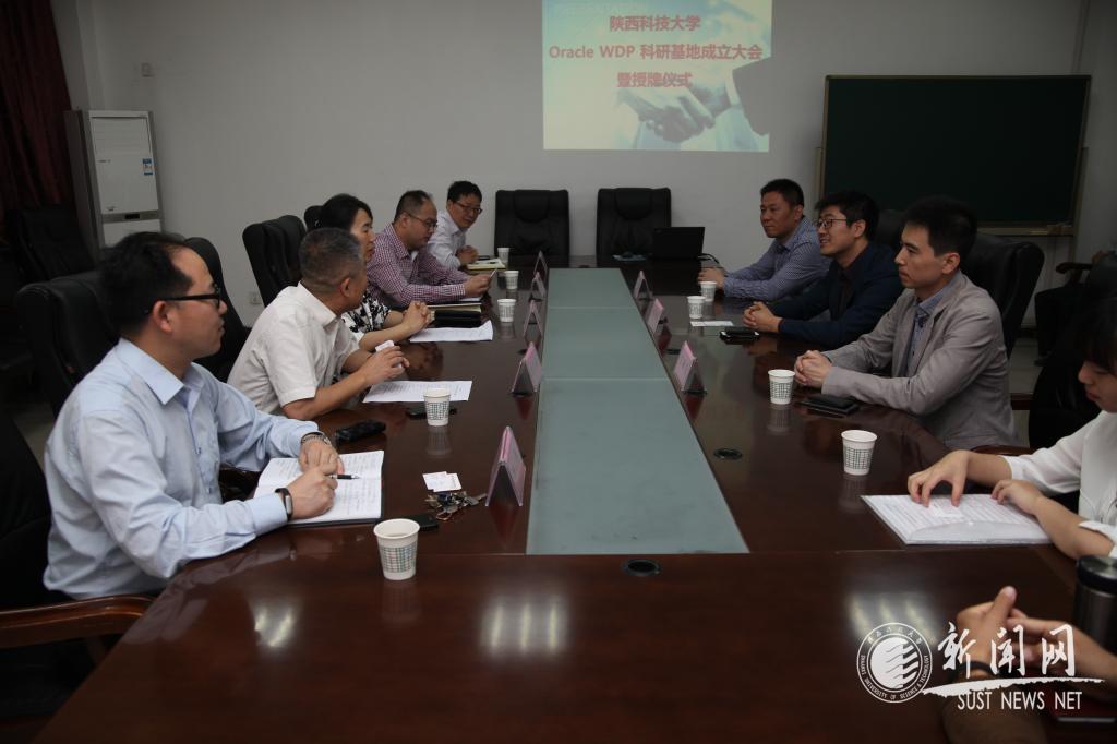 5月25日, Oracle University北方區(qū)經(jīng)理郭碧琨、Partner公司(西安優(yōu)盛)技術(shù)總監(jiān)雷建軍等一行5人來到陜西科技大學電信學院,共同舉行了陜西科技大學Oracle WDP(職業(yè)發(fā)展計劃)科研基地成立大會暨授牌儀式。學??倳嫀熜鞎苑濉㈦娦艑W院院長黨宏社及領(lǐng)導班子成員參加了授牌儀式。
