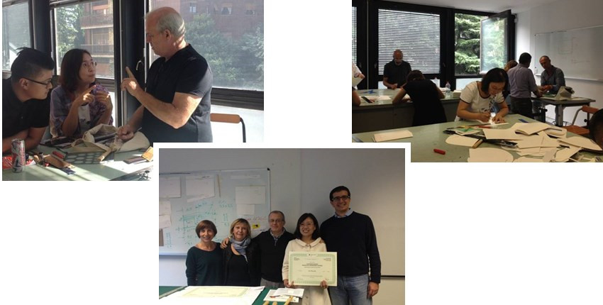 在阿佩爾(ARS ARPEL)設(shè)計學(xué)院,魏小紅聆聽了由意大利皮具世家的授課教師們分別講授的2016、2017年秋冬流行趨勢分析、箱包系列開發(fā)、箱包出格與制作、品牌策劃、色彩與搭配、物料與配飾搭配和手繪等系統(tǒng)的箱包設(shè)計課程,并接受了技能實踐培訓(xùn),還與其他來自世界各大知名皮具企業(yè)的設(shè)計師進(jìn)行了深入交流。返校后,魏小紅從學(xué)習(xí)概況、心得感悟和外出收獲等四個方面,圖文并茂地將所學(xué)、所聞、所感向?qū)W院全體教師進(jìn)行了翔實匯報,讓老師們共同了解到國際化的箱包設(shè)計成果和最新技術(shù)動態(tài)。