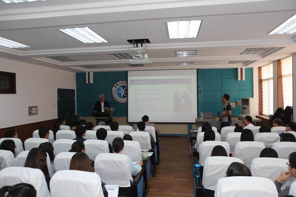 Matthias Scholl從斯密特(SMIT&ZOON)公司皮革行業(yè)的可持續(xù)發(fā)展戰(zhàn)略、毛革清潔環(huán)保工藝、皮革化工材料的未來(lái)發(fā)展趨勢(shì)三大方面展開(kāi)闡述。他首先從工業(yè)、污水中鉻含量、皮革中固定的鉻含量等方面對(duì)傳統(tǒng)鉻鞣劑制革技術(shù)和DF清潔安全技術(shù)做了詳細(xì)比較,得出DF清潔鞣制工藝不僅增加了皮革成品中鉻的固定含量、大大降低了廢水中鉻離子和氯離子的含量,減少了環(huán)境污染,而且該清潔鞣制工藝免除了浸酸和提堿步驟,在一定程度上降低了成本,進(jìn)而實(shí)現(xiàn)了經(jīng)濟(jì)和生態(tài)平衡的可持續(xù)發(fā)展。其次,加脂劑的選擇是該技術(shù)成功的關(guān)鍵,因此Matthias Scholl對(duì)該鞣制工藝中使用的加脂劑的基礎(chǔ)研究及應(yīng)用性能進(jìn)行了深入分析,與現(xiàn)場(chǎng)師生就清潔制革工藝頻頻互動(dòng),并詳細(xì)解答了師生的問(wèn)題,最后,Matthias Scholl重申史密特(SMIT&ZOON)公司未來(lái)的重心是關(guān)愛(ài)人類(lèi)安全與健康、保持經(jīng)濟(jì)持續(xù)發(fā)展和維護(hù)地球生態(tài)與環(huán)保,創(chuàng)建人類(lèi)、地球與經(jīng)濟(jì)三方共同發(fā)展的新局面,并希望與我校就有關(guān)領(lǐng)域進(jìn)行更深入的學(xué)術(shù)合作交流。