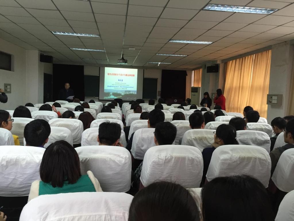 楊教授詳細介紹了農(nóng)藥在國家穩(wěn)定和經(jīng)濟發(fā)展中所處的戰(zhàn)略地位以及綠色農(nóng)藥分子設計面臨的關(guān)鍵科學問題,與廣大師生分享了他創(chuàng)制“苯噻菌酯”、“氯苯醚酰胺”、“氟苯醚酰胺”三個農(nóng)藥候選新品種的研究過程和科研體會。會后還與師生進行了廣泛深入的交流。