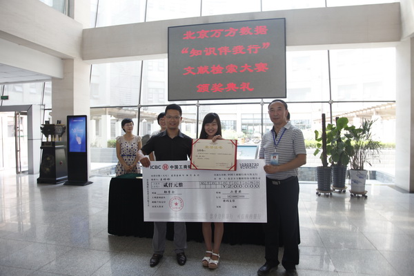 由北京萬(wàn)方數(shù)據(jù)公司籌辦、陜西省各高校圖書(shū)館協(xié)辦的“知識(shí)伴我行”文獻(xiàn)檢索大賽,首次在陜西省舉行。大賽旨在提高學(xué)生的數(shù)據(jù)庫(kù)資源檢索和應(yīng)用能力,激發(fā)學(xué)習(xí)與應(yīng)用資源的熱情共設(shè)特等獎(jiǎng)1名,一等獎(jiǎng)2名,二等獎(jiǎng)18名,三等獎(jiǎng)30名,優(yōu)勝獎(jiǎng)100名。