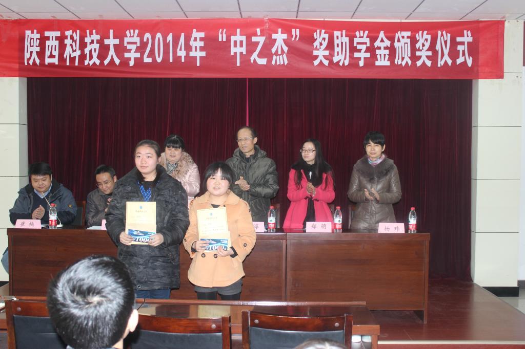 2014年度“中之杰”獎助學(xué)金由我院工業(yè)、物流教研室教師牽線搭橋,浙江中之杰軟件技術(shù)有限公司西安分公司首次在我院設(shè)立了此項獎助學(xué)金。獎勵優(yōu)秀學(xué)業(yè)學(xué)生14名,幫助家庭經(jīng)濟困難學(xué)生2名,發(fā)放共計12000元。