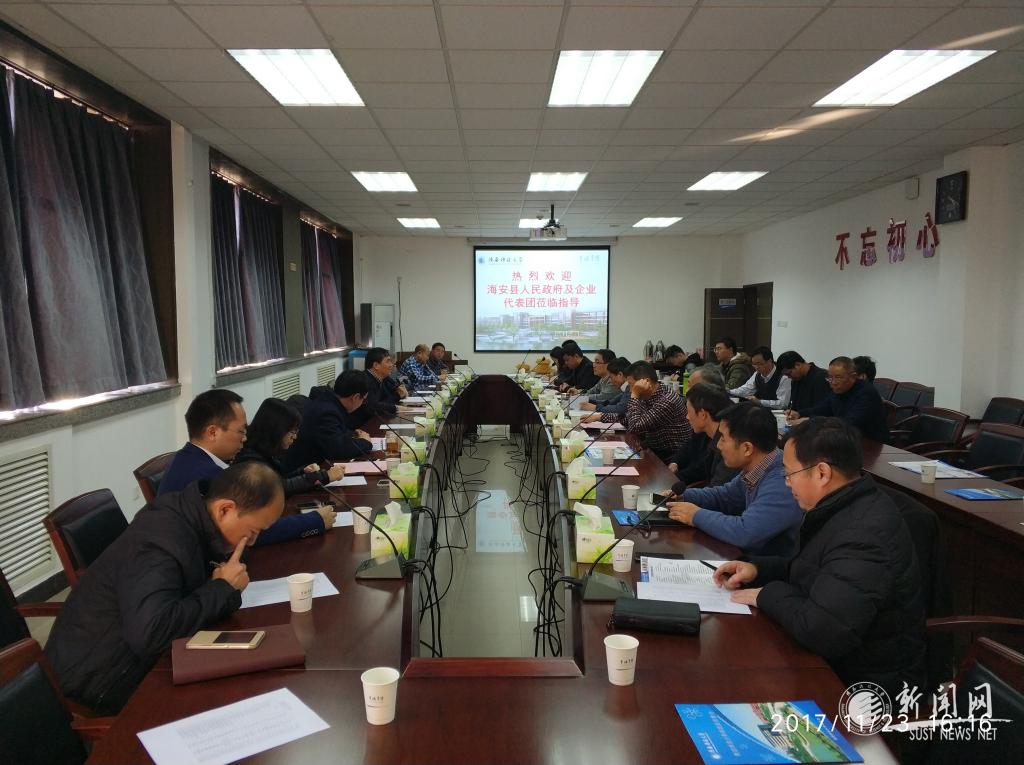 11月23日,江蘇省海安縣人民政府及企業(yè)代表團一行25人來我校進行科技洽談,就進一步加強雙方產(chǎn)學(xué)研合作、推動企業(yè)轉(zhuǎn)型升級進行了深入交流,前沿院常務(wù)副院長殷海榮教授主持了科技洽談會。