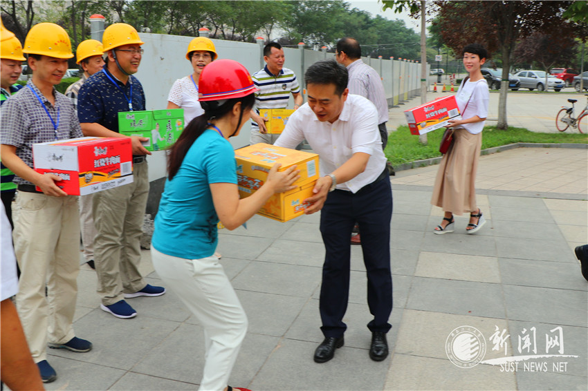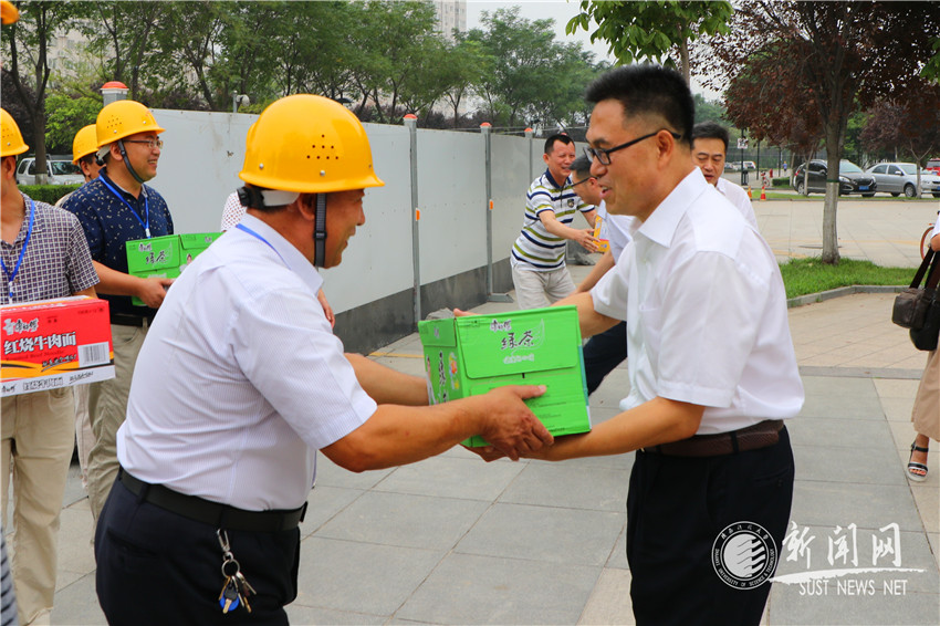 8月2日暑假期間,校黨委書記姚書志、校長馬建中、副校長蔡煜東、紀委書記王樹茂深入我校西安、咸陽兩校區(qū)基建工地,慰問在高溫天氣下堅守在工作崗位上的一線職工,為他們送去夏日的清涼與關(guān)愛。