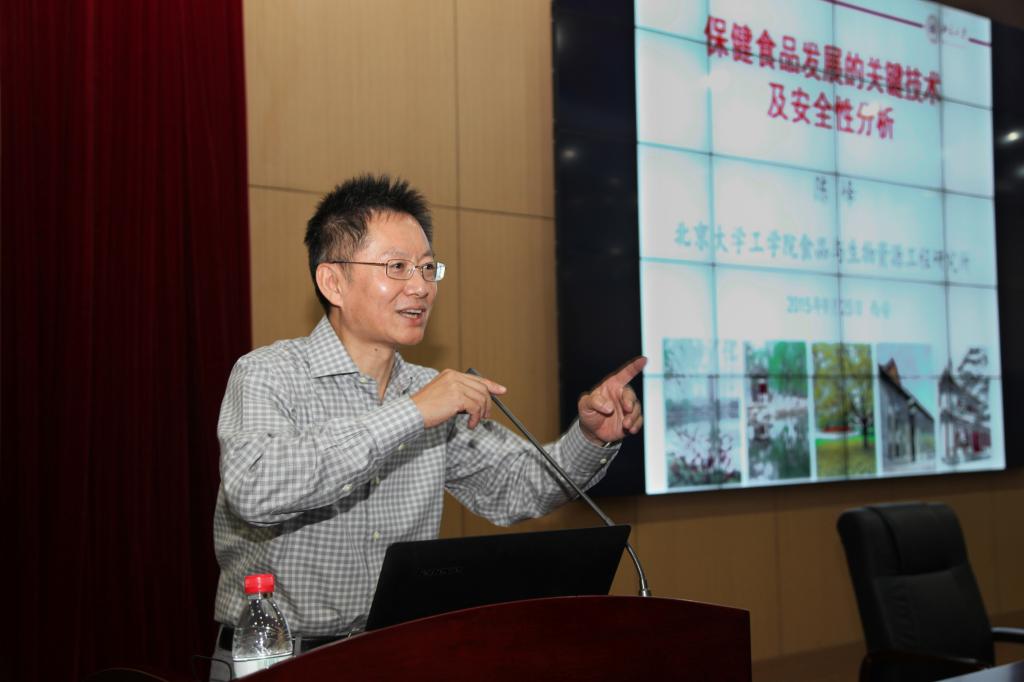 陳峰教授首先結(jié)合自身的教育經(jīng)歷介紹了北大工學(xué)院的發(fā)展及現(xiàn)狀,并從我國(guó)食品產(chǎn)業(yè)發(fā)展的狀況、如何保證保健食品產(chǎn)業(yè)的健康可持續(xù)發(fā)展以及保健食品研發(fā)的技術(shù)現(xiàn)狀等三個(gè)方面進(jìn)行了深入淺出的分析。他指出,科技創(chuàng)新是保健食品產(chǎn)業(yè)發(fā)展的動(dòng)力與保障,而人才的引進(jìn)更是創(chuàng)新的源動(dòng)力,只有建立完善的法規(guī)和監(jiān)管機(jī)制才能確保保健食品產(chǎn)業(yè)的良性發(fā)展。目前雖然我們?cè)诨钚猿煞值暮Y選、分離、提取等方面已取得一定的科研成果,但在功能因子的作用機(jī)制、功能評(píng)價(jià)以及安全性評(píng)價(jià)等方面的研究還有所不足,下一步應(yīng)給予食品功能明確的定位,闡明作用機(jī)制,促進(jìn)保健食品膳食化,為食品的大數(shù)據(jù)時(shí)代貢獻(xiàn)力量。