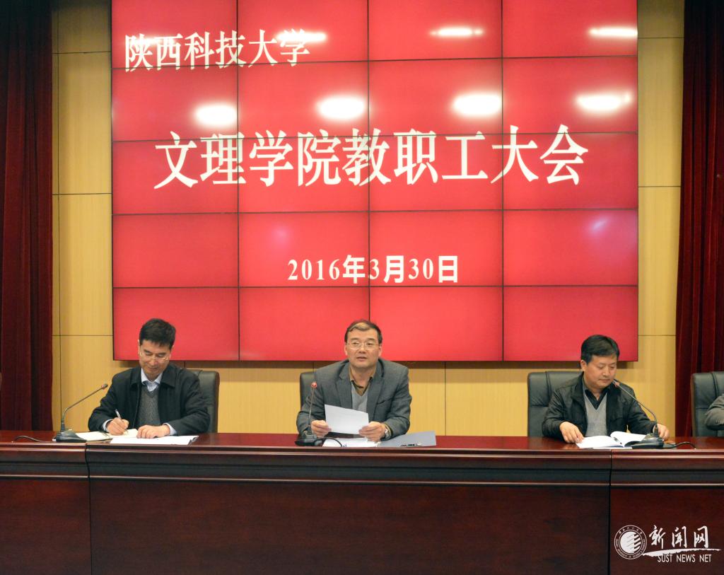文理學(xué)院黨委書記劉建科、院長藺小林分別做了發(fā)言,要求廣大教職工緊緊團結(jié)在一起,同心同德、積極應(yīng)對調(diào)整后的機遇與挑戰(zhàn)。