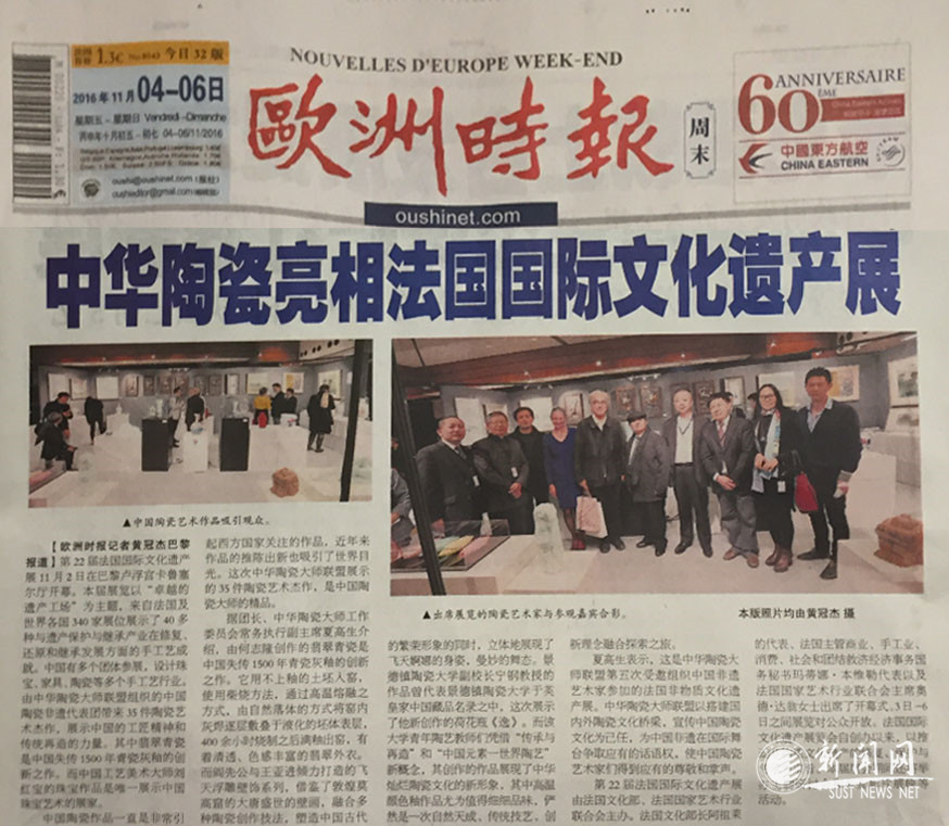 11月2日至6日,第22屆法國國際文化遺產(chǎn)展在法國盧浮宮拉開帷幕,我校設(shè)計與藝術(shù)學院高黎老師攜帶陶藝作品《皮影的故事》、《綻放》應邀參加此次展覽,并受到《歐洲時報》等媒體的報道。