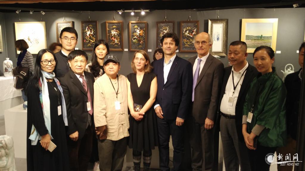 高黎老師(左一)與法國國家藝術(shù)行業(yè)聯(lián)合會前任(右四)和現(xiàn)任主席AUDE TAHON(左四)及陶瓷藝術(shù)家參觀嘉賓合影