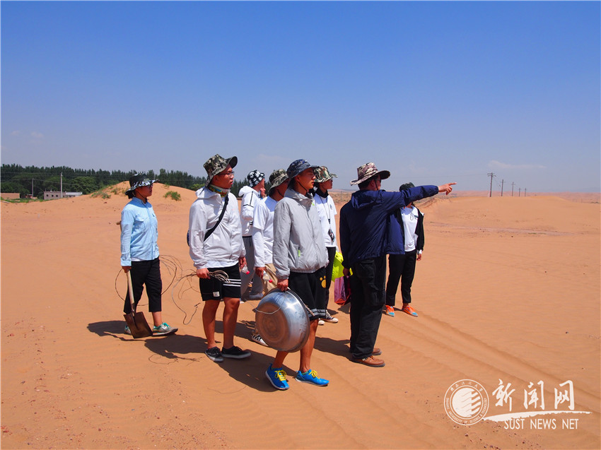 “防風(fēng)固沙”——“沙漠衛(wèi)士”科技綠化社會實踐團(tuán)。7月14日,材料學(xué)院"沙漠衛(wèi)士"科技綠化實踐團(tuán)來到寧夏中衛(wèi),展開為期7天的社會實踐活動。實踐團(tuán)深入騰格里沙漠,調(diào)研公路沿邊植物的生長環(huán)境和形狀特點,實地考察、采集沙漠植株,并采取控制變量法對沙漠植株進(jìn)行集水測試。實踐團(tuán)還對沙漠周邊居民進(jìn)行調(diào)研,實地參觀了解沙坡頭試驗基地,學(xué)習(xí)其他防風(fēng)固沙項目,并采取單一變量法勘探沙丘遷移,繪制沙丘剖面圖。