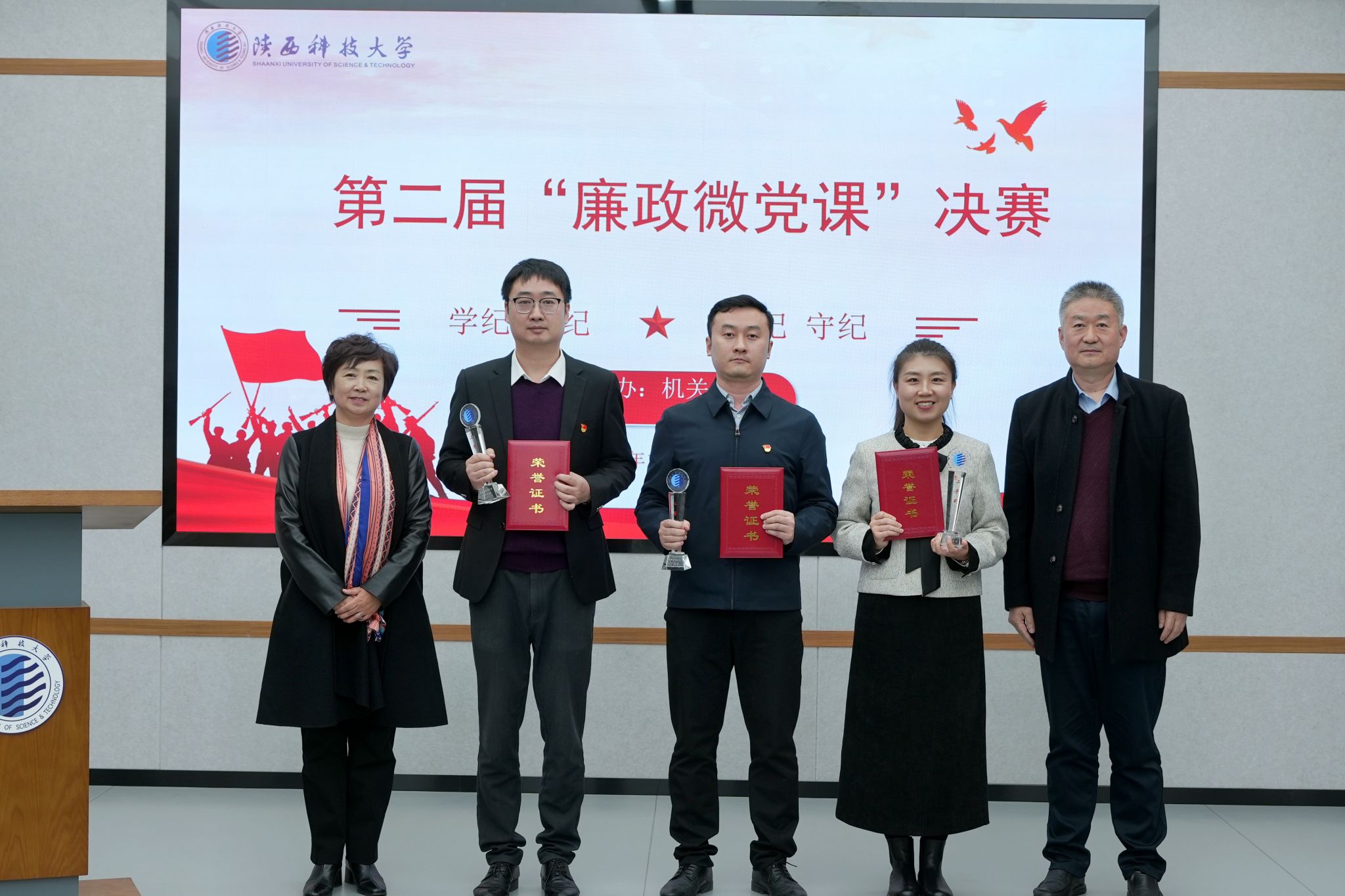 校黨委副書記王道安,校黨委副書記、紀(jì)委書記、監(jiān)察專員羅瑩為獲得一等獎的選手頒獎