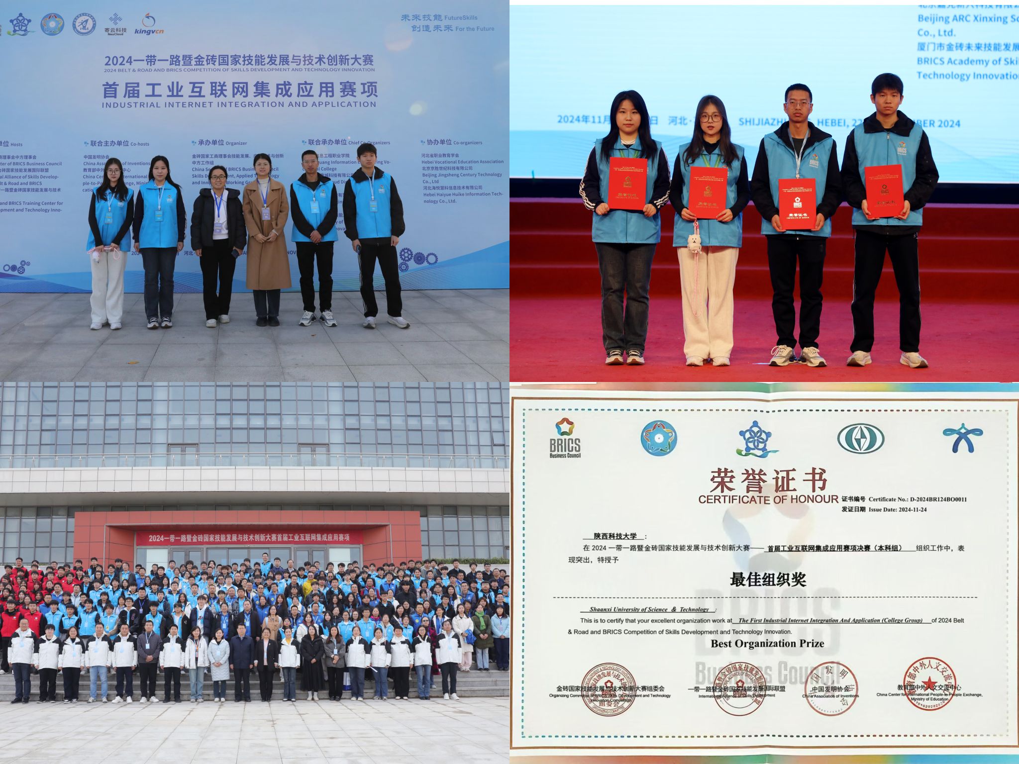 11月22日至24日,2024“一帶一路”暨金磚國家技能發(fā)展與技術(shù)創(chuàng)新大賽首屆工業(yè)互聯(lián)網(wǎng)集成應用賽項在河北石家莊圓滿落幕。來自全國18個省份80多所院校的300余名參賽選手齊聚滹沱河畔。經(jīng)過激烈角逐,數(shù)學與數(shù)據(jù)科學學院學子獲得一等獎1項、優(yōu)秀獎1項,學校榮獲“最佳組織獎”。
