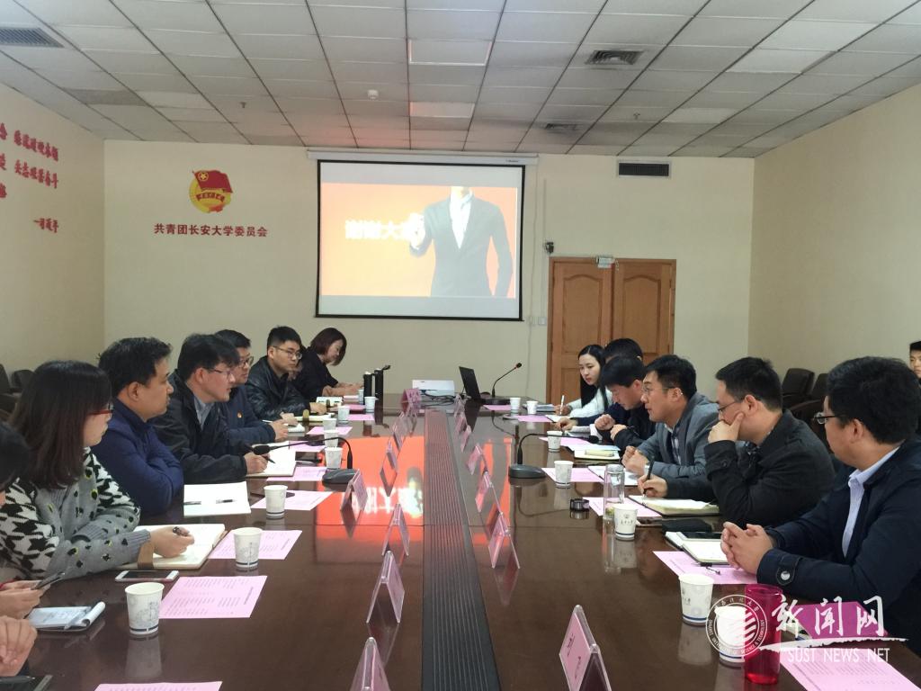 為提升我校共青團(tuán)系統(tǒng)的工作水平,4月11日,校團(tuán)委書記鄭東帶領(lǐng)校團(tuán)委相關(guān)人員及我校全體二級學(xué)院團(tuán)學(xué)工作負(fù)責(zé)人一行14人赴長安大學(xué)開展共青團(tuán)工作經(jīng)驗交流。長安大學(xué)校團(tuán)委書記張永攜團(tuán)委全體工作人員以及部分學(xué)院團(tuán)委書記參與了此次調(diào)研活動。