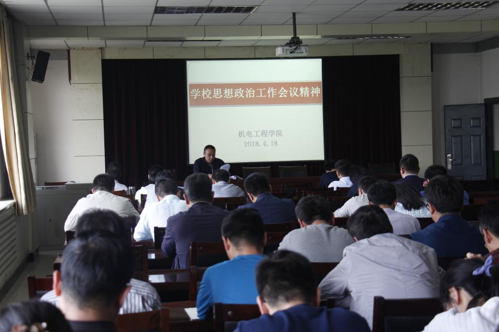 近日,機電工程學(xué)院通過召開中心組擴大學(xué)習、學(xué)生工作專題會議和全體教職工大會,分批次、分類別,有針對、全覆蓋的學(xué)習、傳達和貫徹了學(xué)校思想政治工作會議精神及校黨委書記姚書志在學(xué)校思想政治工作會議上的專題報告。