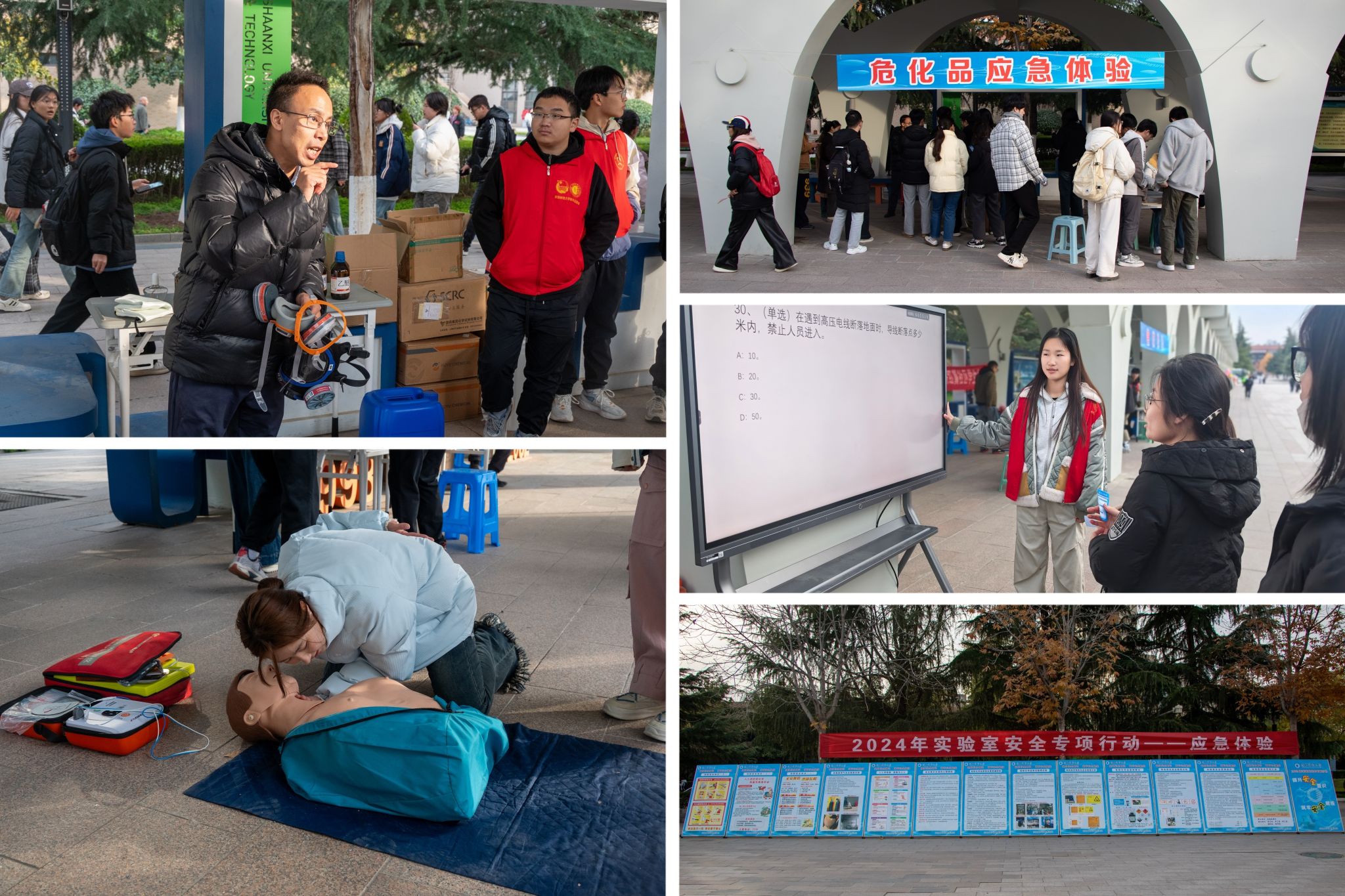 按照學校2024年安全穩(wěn)定工作專項行動要求,實驗室與設備管理處積極落實實驗室安全專項行動安排,聯(lián)合校團委、研工部、機電學院紅翼社區(qū)學生黨支部等單位于12月4-5日,在我校迎新大道文化長廊開展一系列應急場景體驗活動,本次活動涵蓋了?;窇斌w驗、消防應急體驗、急救體驗等多個方面,采取全體驗通關的形式,師生累計參與人數(shù)1160余人次,校黨委副書記李學軍,副校長費貴強出席活動。