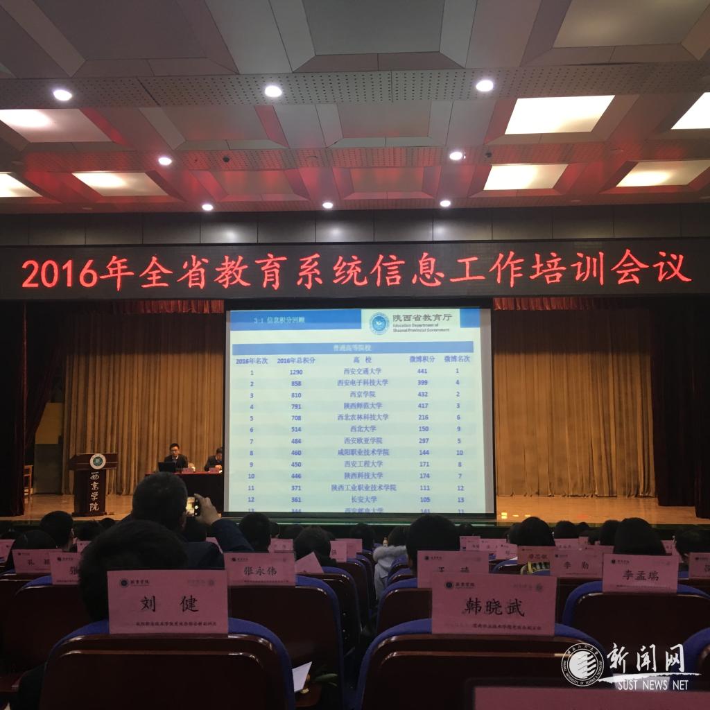 陜西省委高教工委、教育廳11月24日在西京學(xué)院召開2016年全省教育系統(tǒng)信息工作培訓(xùn)會議,我校官方微博、微信被授予“2016年度高校新媒體運營十佳獎”。
