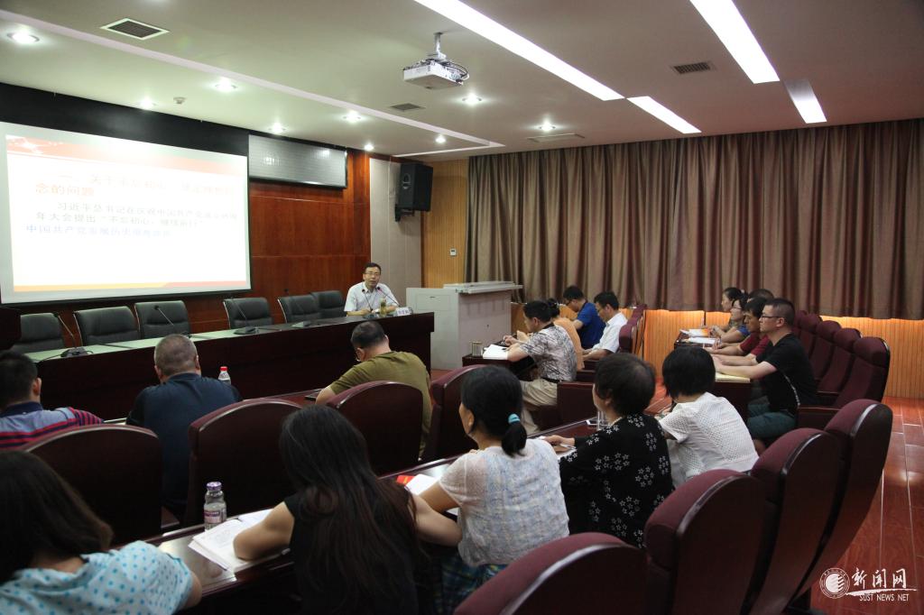 7月13日,副校長郭霄鵬深入聯(lián)系指導(dǎo)的經(jīng)濟(jì)與管理學(xué)院會計人力黨支部檢查指導(dǎo)“兩學(xué)一做”學(xué)習(xí)教育開展情況,并為該支部和所在的發(fā)展規(guī)劃處支部、主管的國資處黨支部、網(wǎng)絡(luò)管理中心黨支部全體黨員講授“不忘初心努力工作 做一名合格的高校黨員”的專題黨課。