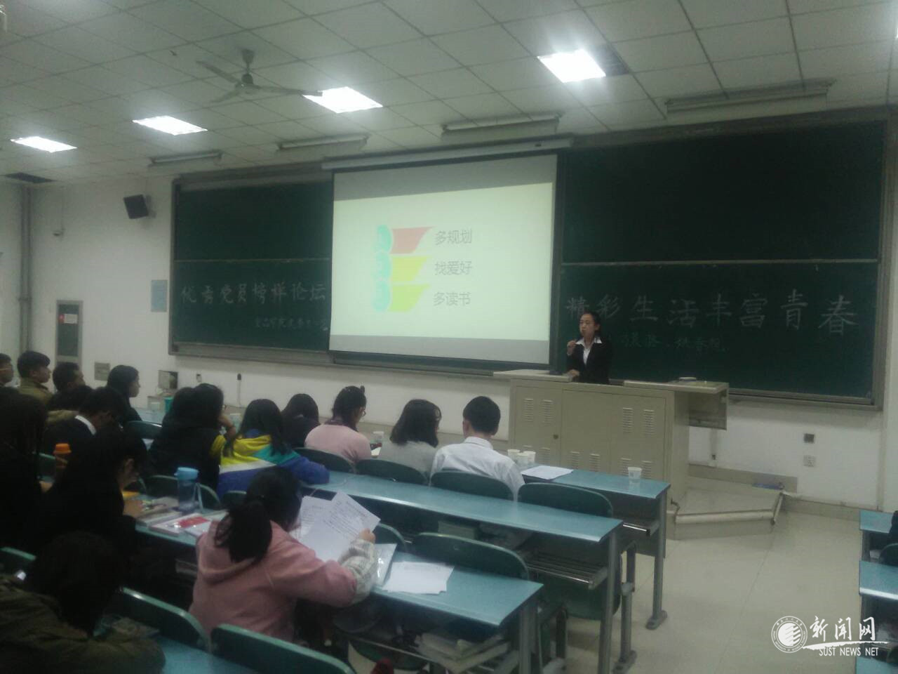 方晨璐以“大學(xué)四年,怎么樣才算不辜負(fù)?”為題,引導(dǎo)同學(xué)們認(rèn)識(shí)到黨員不僅僅是一種身份和榮譽(yù),更是一種責(zé)任和使命。鼓勵(lì)學(xué)生黨員應(yīng)當(dāng)做普通學(xué)生的領(lǐng)頭羊,并向同學(xué)們提出了多規(guī)劃、找愛好、多讀書、珍惜大學(xué)友誼、培養(yǎng)自身心理素質(zhì)、自主思維等方面的建議。最后她用“不忘初心,繼續(xù)前進(jìn)”鼓勵(lì)在場同學(xué)珍惜時(shí)間,合理規(guī)劃,把握大學(xué)生活。