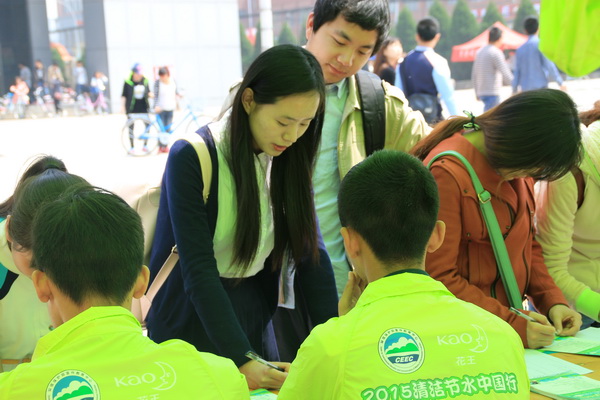 11日上午,環(huán)境保護部宣傳教育中心、花王(中國)投資有限公司、省環(huán)境保護部宣傳教育中心、陜西省環(huán)保志愿者聯(lián)合會、陜西環(huán)保沙龍等相關機構的負責人來到活動現(xiàn)場指導,并與我校志愿者進行了親切交談。他們對活動現(xiàn)場的益微青團志愿者們手繪的節(jié)水涂鴉海報給予了高度贊揚,對志愿者們的辛勤工作給予高度肯定。