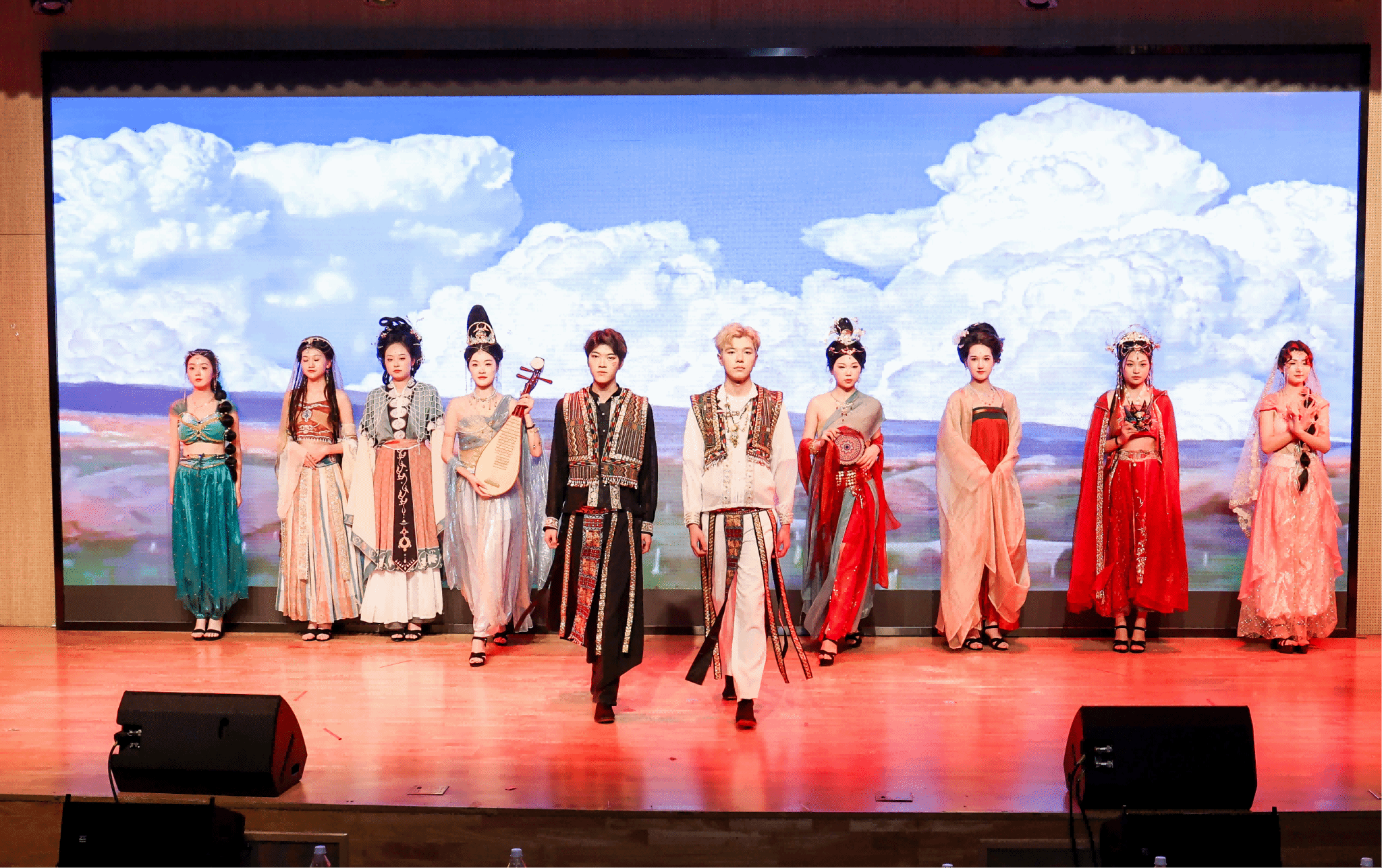 頒獎(jiǎng)典禮分為四個(gè)篇章,以開場(chǎng)舞《盛世》拉開序幕,現(xiàn)場(chǎng)播放了我校學(xué)生剪輯的短片:《沙漠綠洲絲綢之路》《草原·雪原絲綢之路》《海上絲綢之路》《西南絲綢之路》,這四個(gè)短片分別選取了絲綢之路題材影視歷史發(fā)展過程中的四個(gè)重要地理區(qū)位,用極具代表性的影視片段合成生動(dòng)地展示了絲綢之路的輝煌與歷史發(fā)展脈絡(luò)。受邀參加此次頒獎(jiǎng)典禮的領(lǐng)導(dǎo)嘉賓分別為優(yōu)秀獎(jiǎng)、優(yōu)秀指導(dǎo)教師、優(yōu)秀組織獎(jiǎng)、三等獎(jiǎng)、二等獎(jiǎng)、一等獎(jiǎng)等獲獎(jiǎng)同學(xué)、教師及單位頒發(fā)榮譽(yù)證書并合影留念。此外我校設(shè)計(jì)與藝術(shù)學(xué)院的學(xué)生表演了獨(dú)舞《絲路幻影》、模特走秀《絲綢之路萬里行》、朗誦《千年一路,絲綢榮光》等精彩節(jié)目,為現(xiàn)場(chǎng)觀眾帶來了一場(chǎng)極致的視聽盛宴,整場(chǎng)頒獎(jiǎng)典禮以豐富的藝術(shù)形式呈現(xiàn)了絲路文化獨(dú)特的藝術(shù)魅力,贏得了現(xiàn)場(chǎng)觀眾熱烈的掌聲。