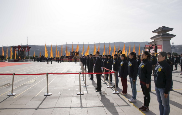 “我祖赫赫,開辟洪荒。功化神圣,世代仰望?!?月5日上午,備受矚目的乙未年(2015)清明公祭軒轅黃帝典禮在我省黃陵縣橋山黃帝陵祭祀廣場隆重舉行。萬余名海內(nèi)外中華兒女代表,滿懷虔誠與崇敬之情,穿過軒轅橋,登上龍尾道,齊聚軒轅殿祭祀廣場,參加公祭活動。我校500名大學生,為公祭活動現(xiàn)場提供秩序維護志愿服務,成為典禮現(xiàn)場的一大亮點。