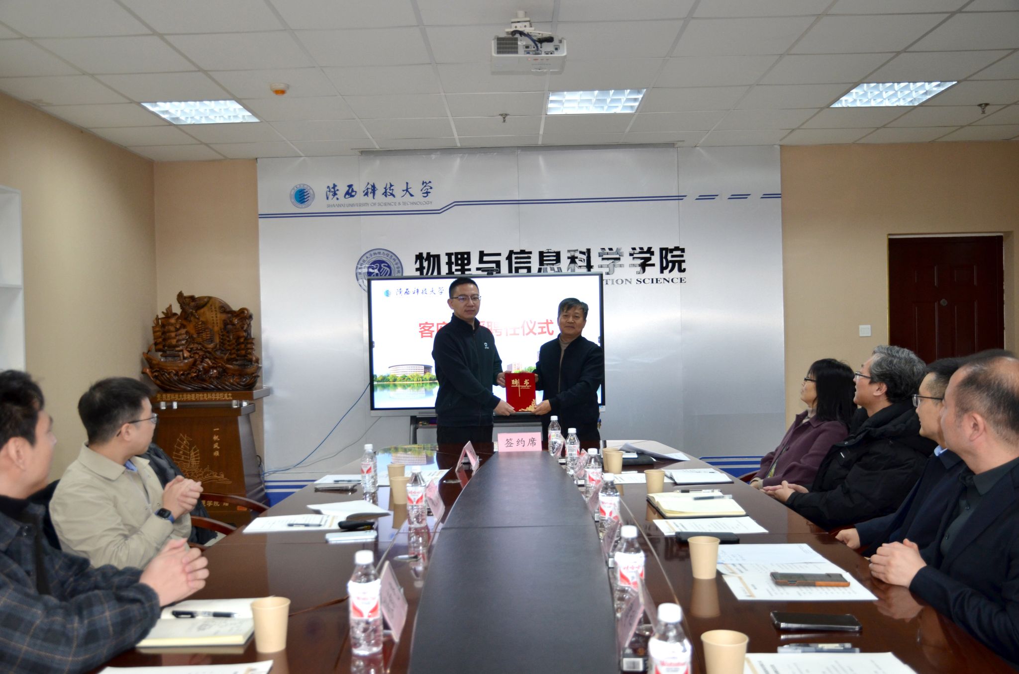 費(fèi)貴強(qiáng)介紹了陜西科技大學(xué)發(fā)展歷程及學(xué)科專(zhuān)業(yè)情況,對(duì)深圳量旋科技有限公司支持我校教育事業(yè)發(fā)展表示感謝,并希望物理學(xué)院在量子信息實(shí)驗(yàn)室建設(shè)、人才培養(yǎng)、科學(xué)研究等方面不斷深化與深圳量旋科技有限公司的合作。物理學(xué)院院長(zhǎng)劉建科、深圳量旋科技有限公司總裁項(xiàng)金根分別介紹了物理學(xué)院基本情況和公司基本概況。