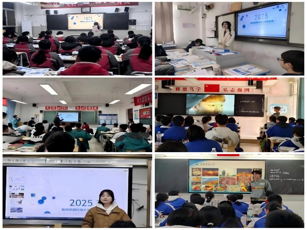 寒假期間,陜西科技大學各學院學生積極回訪高中母校,開展豐富多彩的宣傳活動。輕工學院輕化 242 班陳少龍回到湖南省株洲四中,分享大學點滴、趣事,還播放《尋秦記》宣傳片展示校園風貌,現(xiàn)場氣氛熱烈。新能源 242 班齊思妍在華清中學結合自身經(jīng)歷介紹學校專業(yè)、分享經(jīng)驗、解答疑問,增強學弟學妹信心的同時也鍛煉了自身能力。食品、機電、電控、電智、設藝、阿院等學院的諸多同學也積極行動,分別回訪各自中學,開展多場宣講,覆蓋多地數(shù)千名高中生,從科技創(chuàng)新、社團活動等多角度展現(xiàn)科大青年風采,激發(fā)學弟學妹對大學生活的向往,為學校品牌宣傳貢獻力量。