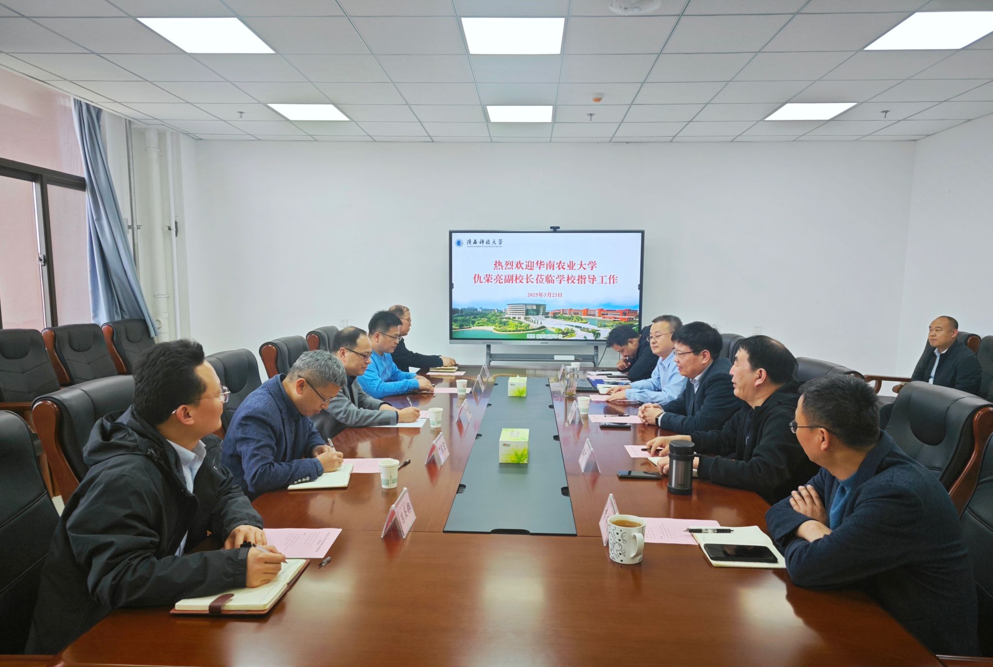 陸趙情對(duì)仇榮亮的來(lái)訪表示熱烈歡迎,簡(jiǎn)要介紹了學(xué)校辦學(xué)歷史、行業(yè)區(qū)域特色、人才引育、學(xué)科專業(yè)建設(shè)、科學(xué)研究等方面的情況,希望兩校能以此次交流為契機(jī),促進(jìn)資源共享、加強(qiáng)合作、深化友誼,共同推進(jìn)兩校事業(yè)高質(zhì)量發(fā)展。仇榮亮對(duì)我校近年來(lái)取得的成績(jī)給予高度肯定,他表示陜科大富于開(kāi)拓精神的辦學(xué)理念令人印象深刻,行業(yè)區(qū)域特色明顯,在發(fā)展思路與學(xué)科方向上均與華南農(nóng)業(yè)大學(xué)有著相似之處,未來(lái)合作潛力巨大。他希望通過(guò)此次交流,加強(qiáng)相關(guān)領(lǐng)域的合作,為雙方共同進(jìn)步作出貢獻(xiàn)。