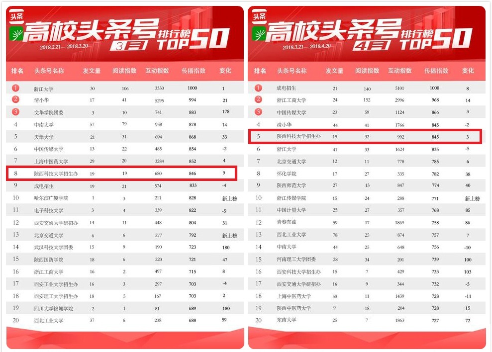 陜西科技大學(xué)招生辦頭條號排名匯總表