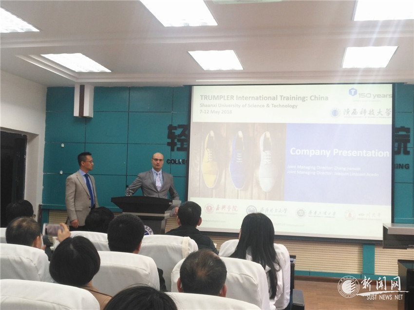 培訓(xùn)班開班儀式于5月7日上午8:30在陜西科技大學(xué)實(shí)驗(yàn)樓1B 318學(xué)術(shù)報(bào)告廳舉行。出席此次開班儀式的嘉賓有湯普勒(Trumpler)公司中國總裁張建維先生和JOAQUIN LINZOAIN ACEDO先生、產(chǎn)品交流和推廣經(jīng)理Jeffry Guthrie-Stracha博士、中國高新項(xiàng)目經(jīng)理劉四華先生等以及來自國內(nèi)外六所高校輕化工程專業(yè)的師生。輕工科學(xué)與工程學(xué)院院長弓太生教授致辭,嘉興學(xué)院材料與紡織工程學(xué)院副院長黃立新教授發(fā)表講話。開班儀式由皮革系副主任徐群娜副教授主持。開班儀式后湯普勒公司嘉賓與兄弟院校專家一行參觀了毛皮與制革工藝實(shí)驗(yàn)室、輕工學(xué)院分析檢測中心以及陜西科技大學(xué)分析檢測中心,專家對學(xué)院和學(xué)校的教學(xué)與科研平臺(tái)給予高度評價(jià)。