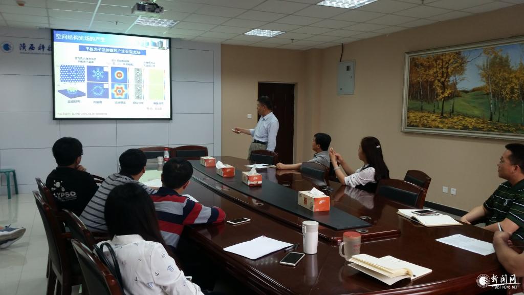 趙建林教授首先介紹了什么是空間結(jié)構(gòu)光場以及空間結(jié)構(gòu)光場的表征物理量,然后介紹了空間結(jié)構(gòu)光場的不同產(chǎn)生方法、調(diào)控方式及光場與物質(zhì)的相互作用,著重介紹了空間結(jié)構(gòu)光場在微納加工領(lǐng)域中的應(yīng)用。隨后,趙教授從個(gè)人的研究經(jīng)歷和學(xué)術(shù)發(fā)展經(jīng)歷出發(fā),分享了他的科研經(jīng)驗(yàn)和科研態(tài)度,并與物理系多名教師進(jìn)行了學(xué)術(shù)討論,同時(shí)對(duì)青年教師的科研發(fā)展提出了中肯的建議。