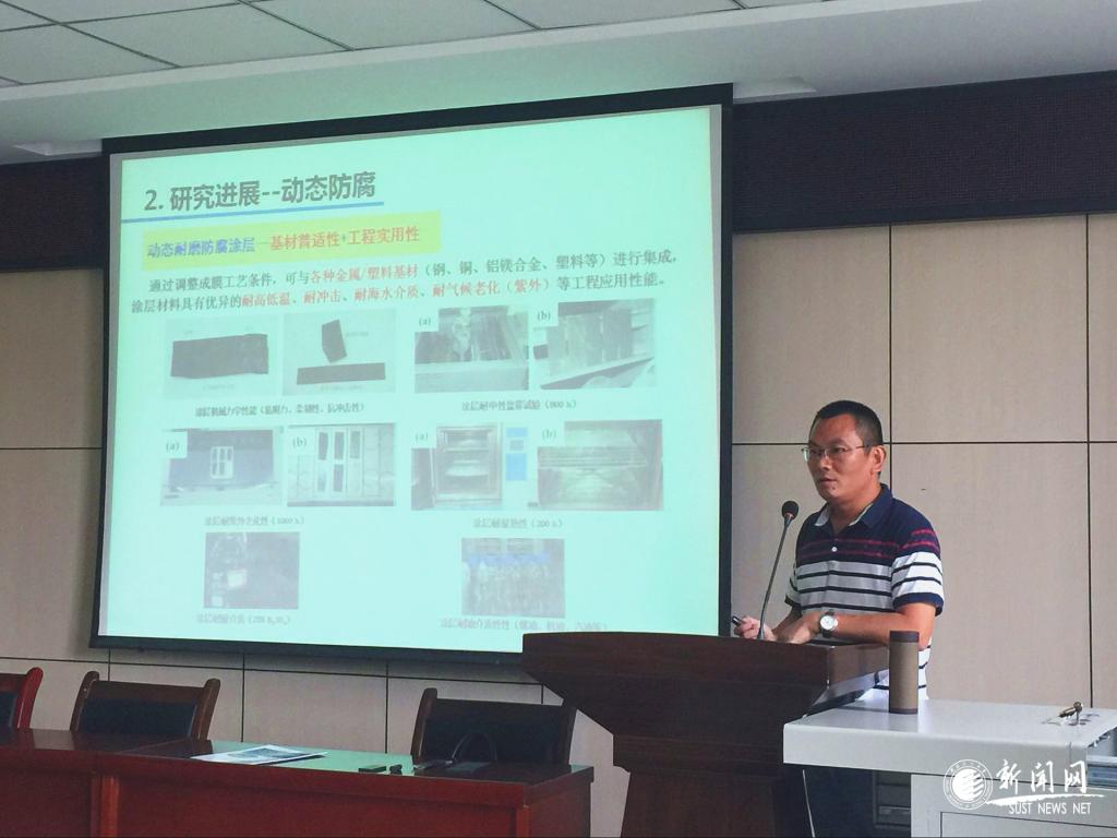 羅荘竹教授的報告圍繞“南海海洋縱深開發(fā)”中遇到的高溫、高濕、高鹽、高紫外熱帶海洋環(huán)境的動態(tài)磨損與腐蝕協(xié)同損傷、沖蝕腐蝕、流體阻力及海生物污損等問題,創(chuàng)新性地提出一種自潤滑防腐功能一體化高分子合金涂層構筑新原理,系統(tǒng)地介紹了動態(tài)耐磨防腐涂層制備與使役的科學問題,并探討了動態(tài)耐磨防腐功能一體化涂層材料領域產學研用及軍民融合的新模式。羅教授的報告深入淺出,結合自己20的科研經驗,闡述了一個科研者如果要獲得成功,必須具有工匠精神,把心沉下來,努力做好每件事。報告后羅教授與參會的教師和同學展開了熱烈的討論,羅教授的報告進一步拓寬了師生在相關領域的思路,師生們收獲頗豐。