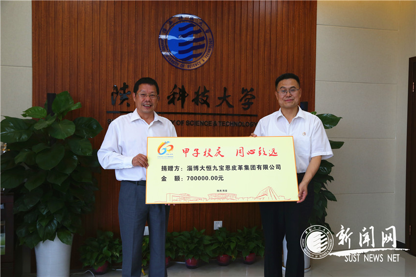 6月25日下午,海寧上元皮革有限責(zé)任公司、淄博大桓九寶恩皮革集團(tuán)有限公司捐贈儀式在逸夫樓416會議室舉行。浙江大眾皮業(yè)有限公司董事長、海寧上元皮革有限責(zé)任公司董事長、我校皮90級校友許建新、淄博大桓九寶恩皮革集團(tuán)有限公司董事長、我校皮87級校友周國祥,我校皮87級校友于明東,校長馬建中,校友總會顧問董繼先,中國輕工業(yè)博物館館長王宏,輕工學(xué)院黨委書記、副院長李新平出席捐贈儀式。陜西科技大學(xué)副校長王學(xué)川主持儀式。