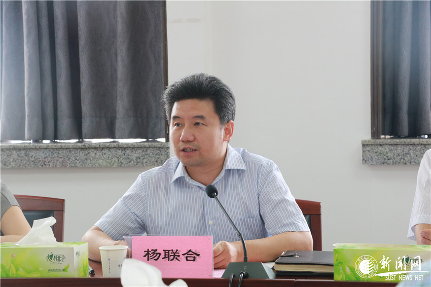 李志健首先對(duì)楊聯(lián)合一行來(lái)校調(diào)研表示歡迎。李志健介紹了學(xué)?!叭齽?chuàng)兩遷”的創(chuàng)業(yè)歷程及學(xué)校的整體發(fā)展規(guī)劃,結(jié)合實(shí)際介紹了學(xué)校順應(yīng)時(shí)代發(fā)展,緊密結(jié)合社會(huì)需求,進(jìn)行學(xué)科發(fā)展,提升專業(yè)內(nèi)涵,使傳統(tǒng)專業(yè)煥發(fā)出了新的生命力和活力。同時(shí),李志健代表學(xué)校對(duì)未央?yún)^(qū)委、區(qū)政府對(duì)陜西科技大學(xué)給予的支持和幫助表示感謝。