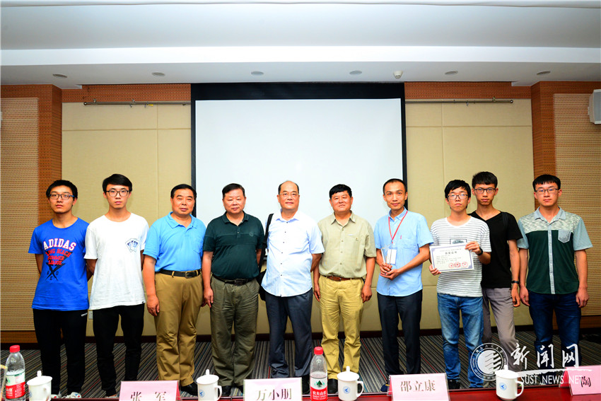 中國圖學學會制圖技術專業(yè)委員會主任邵立康教授(左五),副主任兼秘書長陶冶教授(左四),陜西省工程圖學學會理事長高滿屯教授(左六),中國圖學學會制圖技術專業(yè)委員會副主任、陜西省工程圖學學會副理事長雷光明教授(左三)與我校參賽師生代表