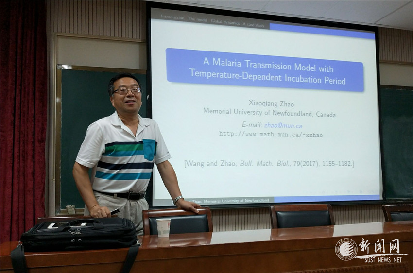 6月27日下午,加拿大紐芬蘭紀念大學趙曉強教授應文理學院邀請作客“未央導師論壇”,為文理學院數(shù)學系師生作了題為“A Malaria Transmission Model with Temperature-Dependent Incubation Period”的學術(shù)報告。報告由文理學院院長藺小林教授主持,數(shù)學系部分教師及研究生聆聽了此次報告。