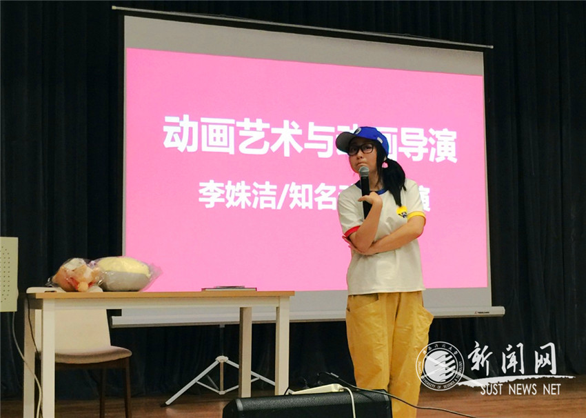 6月26日下午,人氣動(dòng)畫《十萬個(gè)冷笑話》導(dǎo)演、我校動(dòng)畫07屆畢業(yè)生——李姝潔導(dǎo)演,做客我?!拔囱雽?dǎo)師論壇”,在人文樓B座五樓多功能廳做了《動(dòng)畫藝術(shù)與動(dòng)畫導(dǎo)演》的主題報(bào)告。設(shè)計(jì)與藝術(shù)學(xué)院相關(guān)專業(yè)師生、部分返校校友到場參加,報(bào)告會(huì)由設(shè)藝學(xué)院副院長米高峰教授擔(dān)任主持。