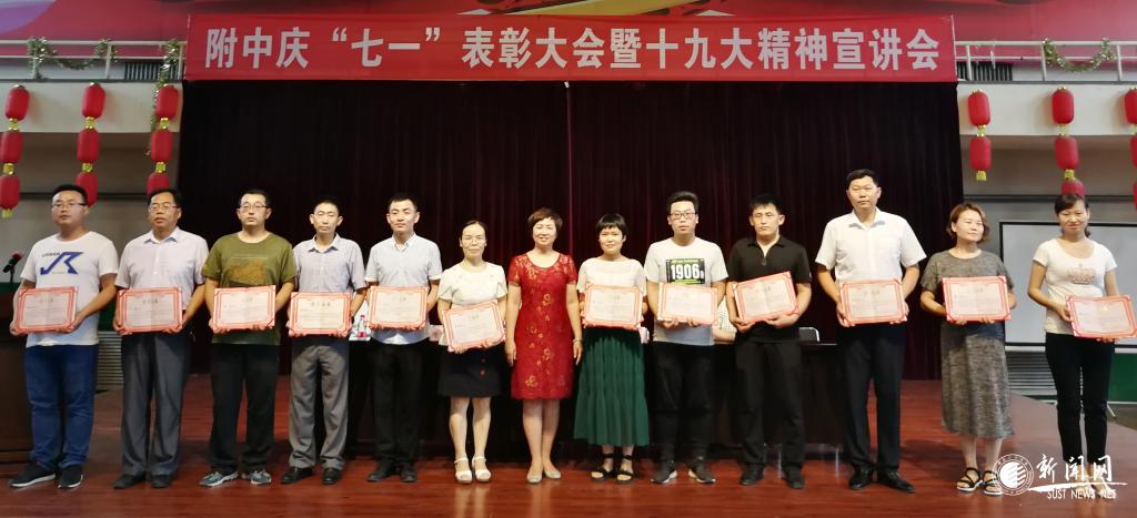 6月29日下午,附中黨委在咸陽(yáng)校區(qū)體育館隆重召開(kāi)慶祝建黨97周年“七一”表彰大會(huì)暨十九大精神專(zhuān)題宣講會(huì)。附中黨委書(shū)記、副校長(zhǎng)王幃,副校長(zhǎng)楊建兵,黨委副書(shū)記、副校長(zhǎng)張健康出席會(huì)議,各教工黨支部、各學(xué)部、各部門(mén)黨員、干部、教師共200余人參加了會(huì)議。會(huì)議由附中黨委副書(shū)記、副校長(zhǎng)何理主持。
