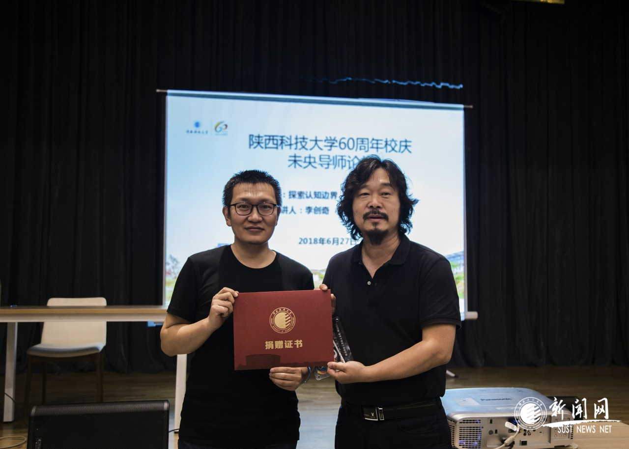 最后,設(shè)藝學(xué)院執(zhí)行院長(zhǎng)詹秦川教授,為李創(chuàng)奇頒發(fā)了校友捐贈(zèng)榮譽(yù)證書(shū)、校友林標(biāo)牌及相關(guān)紀(jì)念品等。