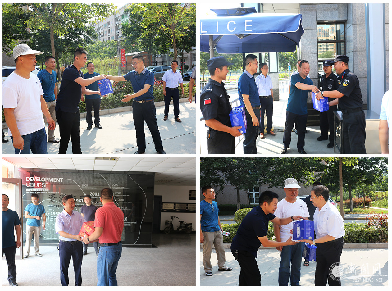 連日來的高溫既考驗(yàn)著奮斗在一線的廣大教職員工,也牽動(dòng)著校領(lǐng)導(dǎo)的心。8月20日,校長(zhǎng)馬建中、校黨委副書記王道安、副校長(zhǎng)黃劍鋒、校長(zhǎng)助理鄭恩讓深入輕工科學(xué)與工程學(xué)院、圖書館各單位檢查工作并慰問在酷暑中依然堅(jiān)守一線的職工。