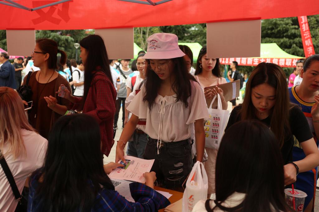 今年的迎新工作處處有亮點(diǎn),無不體現(xiàn)著全校師生員工對新生們的殷殷關(guān)懷。機(jī)電工程學(xué)院新生接待點(diǎn)的小型科技成果展,吸引著新生和家長的目光,這些學(xué)生科研團(tuán)隊(duì)的項(xiàng)目成果激發(fā)他們立志在大學(xué)學(xué)習(xí)中放飛理想。在經(jīng)濟(jì)與管理學(xué)院新生接待點(diǎn),會計(jì)專業(yè)大二的學(xué)生沙米拉·木合達(dá)作為迎新志愿者,正在忙碌地工作,我校2018級新生中也首次迎來了24名來自新疆的少數(shù)民族預(yù)科生,他們也在今天開啟了嶄新的學(xué)習(xí)生活。教育學(xué)院流動圖書室也來到了學(xué)院新生接待點(diǎn),現(xiàn)場向新生們借出了90余本書籍,營造了濃濃的書香氛圍。