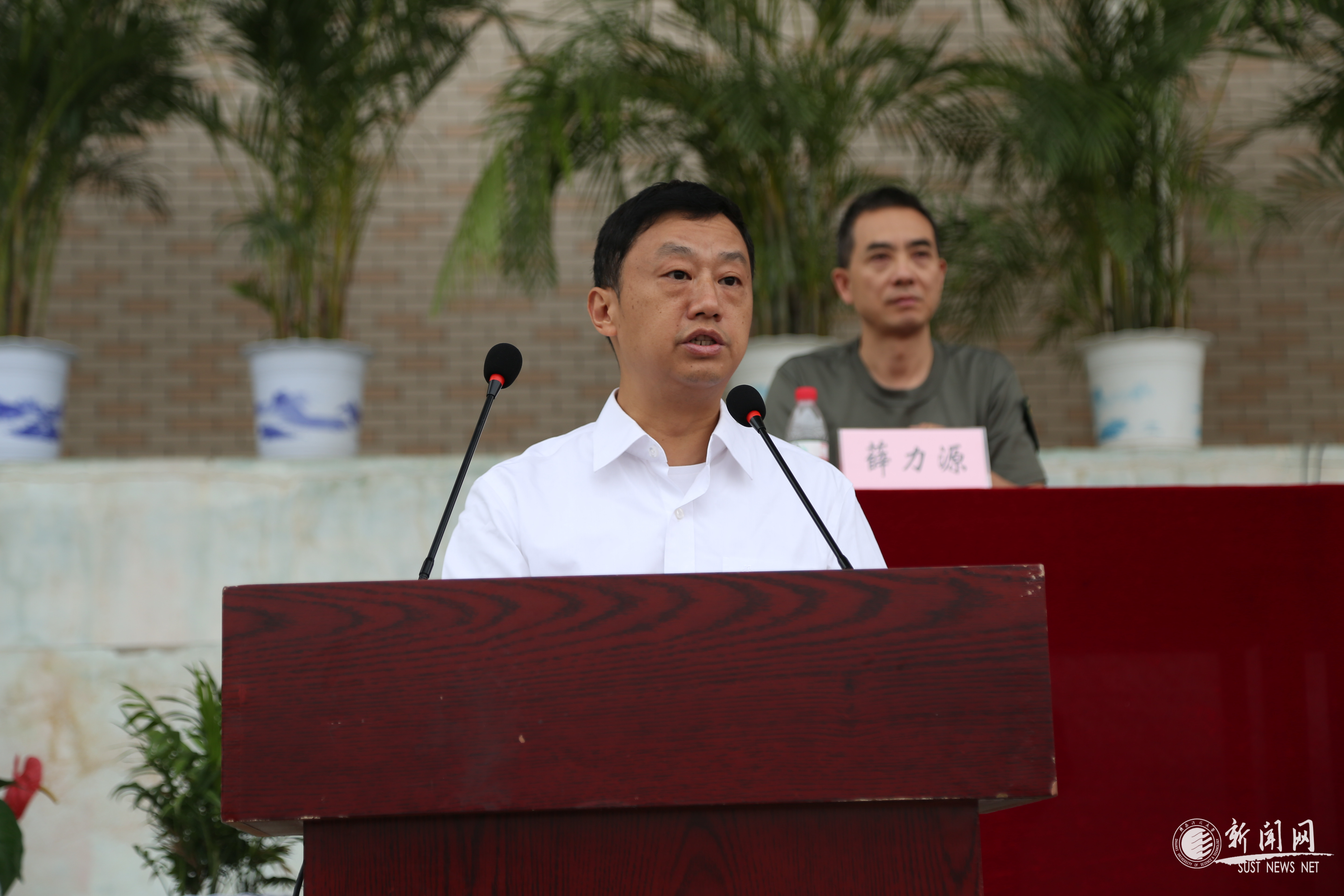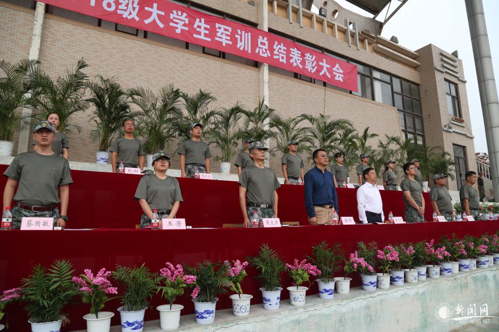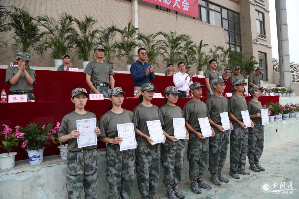 溫鋒在大會上作軍訓(xùn)總結(jié)講話。他指出,軍事訓(xùn)練是大學(xué)生成長的重要一課,對增強學(xué)生身體素質(zhì)、磨煉學(xué)生意志品質(zhì)、強化學(xué)生紀(jì)律觀念有著重要意義,學(xué)校上下高度重視,將其作為立德樹人的一項重要任務(wù)。他表示,為期11天的軍訓(xùn)期間,我校國旗護衛(wèi)隊的教官們科學(xué)施教,嚴(yán)格要求,文明帶兵,以身作則,成為學(xué)校弘揚愛國主義、宣傳國防教育、建設(shè)文明校園的一道靚麗風(fēng)景線;全體參訓(xùn)學(xué)生以謙遜的心態(tài)投入學(xué)習(xí),以飽滿的熱情迎接挑戰(zhàn),以頑強的意志戰(zhàn)勝高溫,以最高的要求約束自我,經(jīng)受住了各種困難和考驗,順利圓滿地完成了本次軍訓(xùn)任務(wù)。他希望,全體學(xué)生秉承“三創(chuàng)兩遷”精神,恪守“至誠至博”校訓(xùn),在今后的學(xué)習(xí)生活中,刻苦學(xué)習(xí),勇于開拓,盡快完成角色轉(zhuǎn)換,適應(yīng)大學(xué)學(xué)習(xí)、生活,通過扎扎實實的奮斗實現(xiàn)自己的目標(biāo),為學(xué)校的奠基、復(fù)興、騰飛貢獻力量。