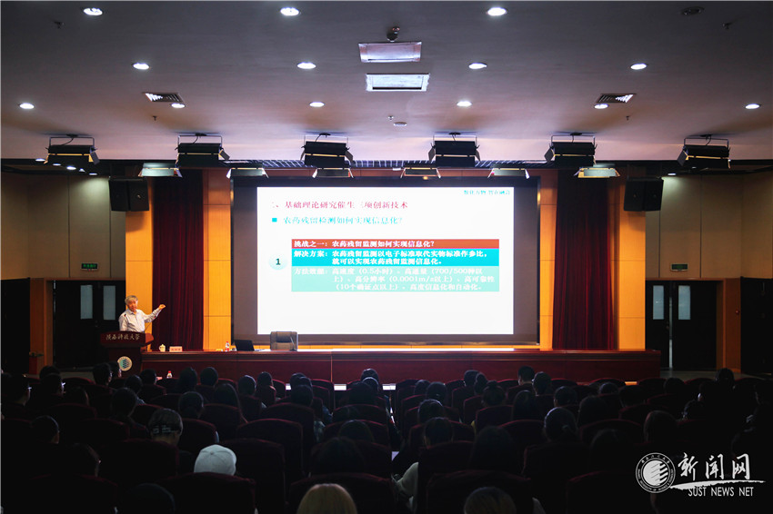 中國工程院院士龐國芳院士應(yīng)邀于9月16日上午做客我校院士論壇,在教師發(fā)展中心學(xué)術(shù)報告廳做了題為“信息化引領(lǐng)食品安全農(nóng)藥殘留檢測技術(shù)創(chuàng)新發(fā)展”的專題報告。校長馬建中、學(xué)科辦和食品與生物工程學(xué)院有關(guān)負(fù)責(zé)人及師生代表500余人參加了本次報告會。報告會由副校長王學(xué)川主持。