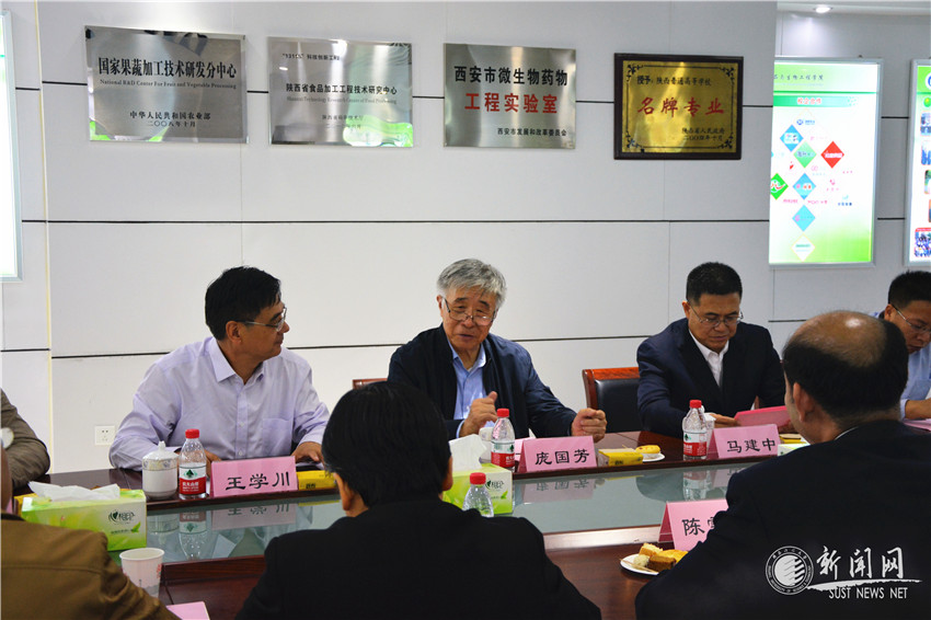 專題報告之后,在馬建中、王學(xué)川等的陪同下,龐國芳院士參觀了我校校史館、中國輕工業(yè)博物館、現(xiàn)代儀器分析中心以及食品學(xué)院、輕工學(xué)院的有關(guān)實(shí)驗(yàn)室;聽取了食品學(xué)院學(xué)科建設(shè)總體情況,“食品質(zhì)量安全控制”與“食品營養(yǎng)與健康”團(tuán)隊(duì)建設(shè)情況等匯報,并與食品學(xué)院骨干教師進(jìn)行了座談,提出了建設(shè)性意見。他勉勵學(xué)院和教師要堅(jiān)定信心,沉下心去搞科研,不斷鞏固和擴(kuò)大區(qū)域特色和優(yōu)勢,努力做到傳承基礎(chǔ)上的創(chuàng)新,力爭取得更大更好的成績。