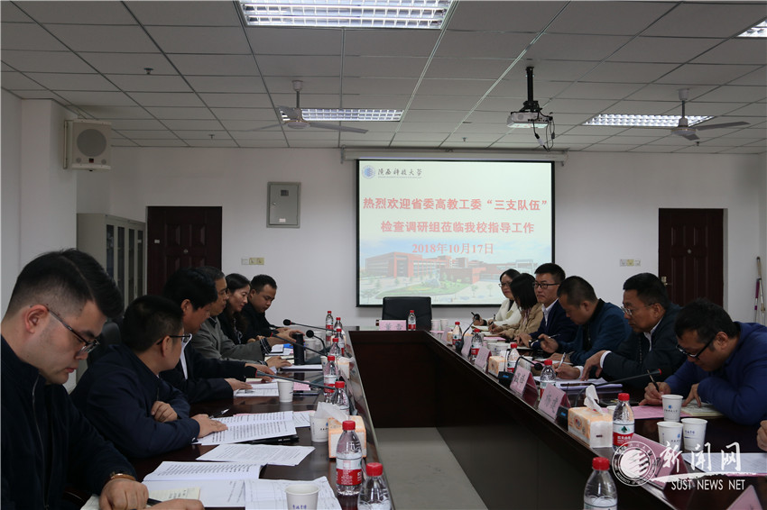 10月17日上午,由西安交通工程學(xué)院黨委書記李博飛擔(dān)任組長(zhǎng)的省委高教工委第二檢查組一行六人對(duì)我校輔導(dǎo)員隊(duì)伍建設(shè)、學(xué)生心理健康教育和共青團(tuán)工作進(jìn)行檢查調(diào)研。校黨委副書記溫鋒全程參與檢查調(diào)研活動(dòng),組織部、學(xué)工部、財(cái)務(wù)處、教務(wù)處、人事處、團(tuán)委等相關(guān)職能部門負(fù)責(zé)人及部分學(xué)院學(xué)生工作負(fù)責(zé)人、心理健康教育專職教師、輔導(dǎo)員參加會(huì)議,會(huì)議由學(xué)工部部長(zhǎng)李曉主持。