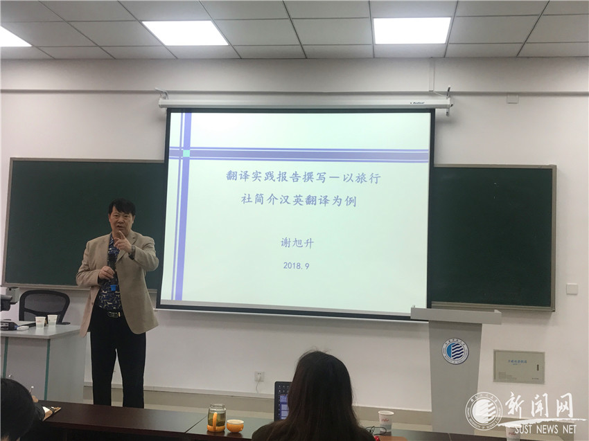 10月22日、23日,全國(guó)翻譯專業(yè)學(xué)位研究生教育指導(dǎo)委員會(huì)學(xué)術(shù)委員會(huì)委員、中國(guó)英漢語(yǔ)比較研究會(huì)理事、新疆大學(xué)外國(guó)語(yǔ)學(xué)院謝旭升教授應(yīng)邀作客我?!拔囱雽?dǎo)師論壇”, 在文理學(xué)院MTI教育中心報(bào)告廳進(jìn)行了四場(chǎng)學(xué)術(shù)講座。系列講座由文理學(xué)院副院長(zhǎng)李穩(wěn)敏主持,文理學(xué)院外語(yǔ)系部分教師、翻譯專業(yè)全體碩士生參加了講座。
