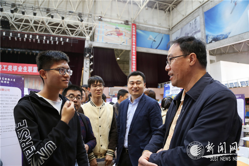 陜西省教育廳學(xué)生處正處級調(diào)研員胡偉安等一行三人,我校黨委副書記溫鋒、學(xué)生就業(yè)指導(dǎo)中心主任李曉、各學(xué)院學(xué)生工作負(fù)責(zé)人到招聘會現(xiàn)場了解情況,并與用人單位代表、畢業(yè)生交流就業(yè)情況,聽取他們的意見建議。