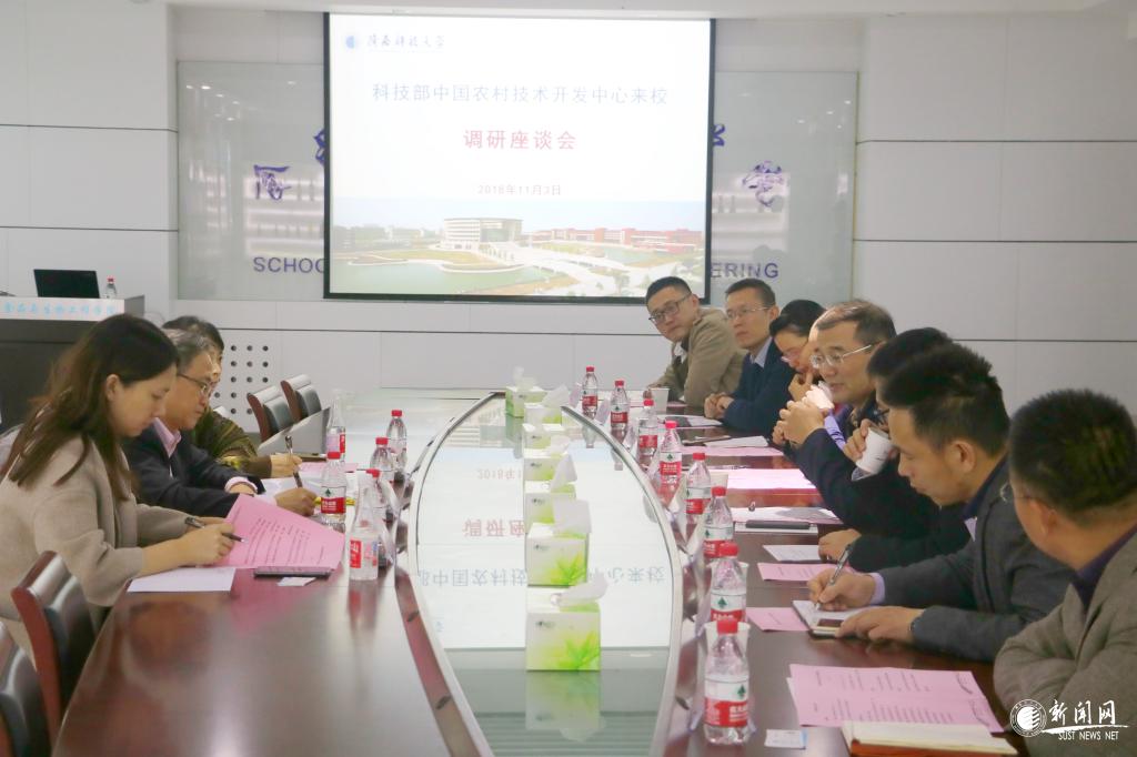 11月3日下午,科技部中國農(nóng)村技術(shù)開發(fā)中心(以下簡(jiǎn)稱“農(nóng)村中心”)主任賈敬敦來校調(diào)研,農(nóng)村中心科技扶貧與科普處副處長(zhǎng)孟燕萍、綜合計(jì)劃與監(jiān)督處王文月博士陪同。校長(zhǎng)馬建中、副校長(zhǎng)李志健會(huì)見賈敬敦一行,之后賈敬敦一行與李志健、科技處、農(nóng)研院、食品學(xué)院負(fù)責(zé)人、學(xué)術(shù)骨干及部分青年教師進(jìn)行座談。座談會(huì)在食品學(xué)院會(huì)議室舉行,由農(nóng)研院常務(wù)副院長(zhǎng)陳雪峰主持。