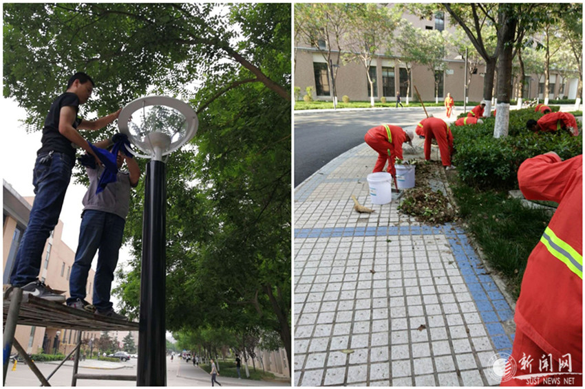后勤工作人員從以前“等”問題,轉(zhuǎn)變?yōu)楝F(xiàn)在“找”問題、解決問題。主動走進各個實驗室、教室、辦公室各處等,排查重點部位,今年起截至10月,已排查維修加固實驗室吊燈1500余個,維修更換,更換維修吊頂20余處,并對全校各實驗室內(nèi)的暖氣片全部進行了除銹刷漆。在做好教室衛(wèi)生保潔的同時,每天檢查桌椅、粉筆、板擦等使用情況,及時維修、更換。自今年3月份起,后勤著力亮化校園環(huán)境,配電班人員對學校教學區(qū)、學生區(qū)主環(huán)道路燈燈泡、燈罩進行了徹底清潔,全面擦洗路燈400余盞,更換教學區(qū)樓宇教室、樓道燈1000多個光源及燈罩。