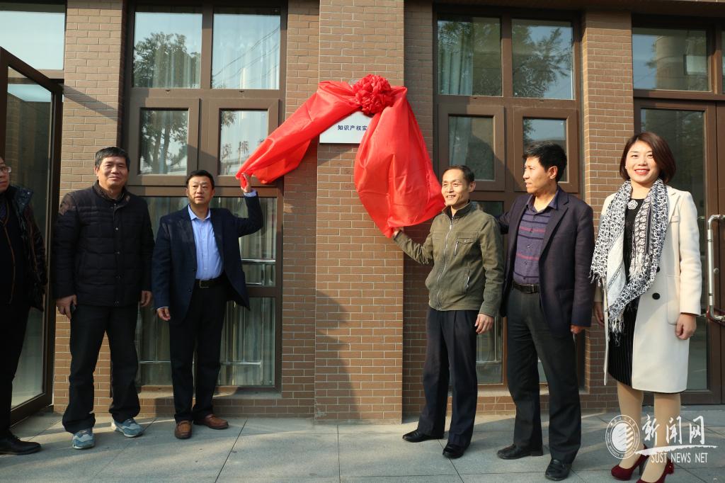 黃劍鋒和張生等為我校知識(shí)產(chǎn)權(quán)實(shí)習(xí)基地揭牌。